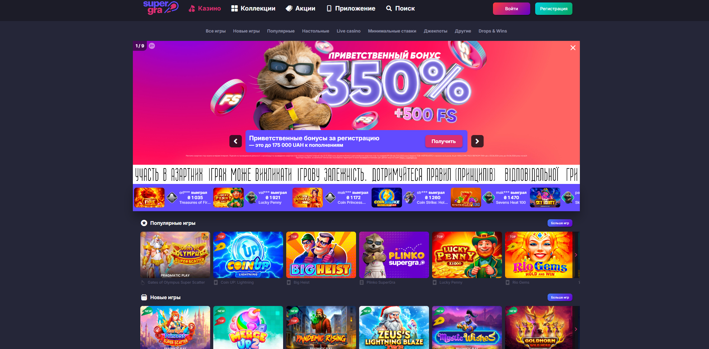 | Мінімальний депозит | Уточняйте на сайте супер гра перед пополнением |